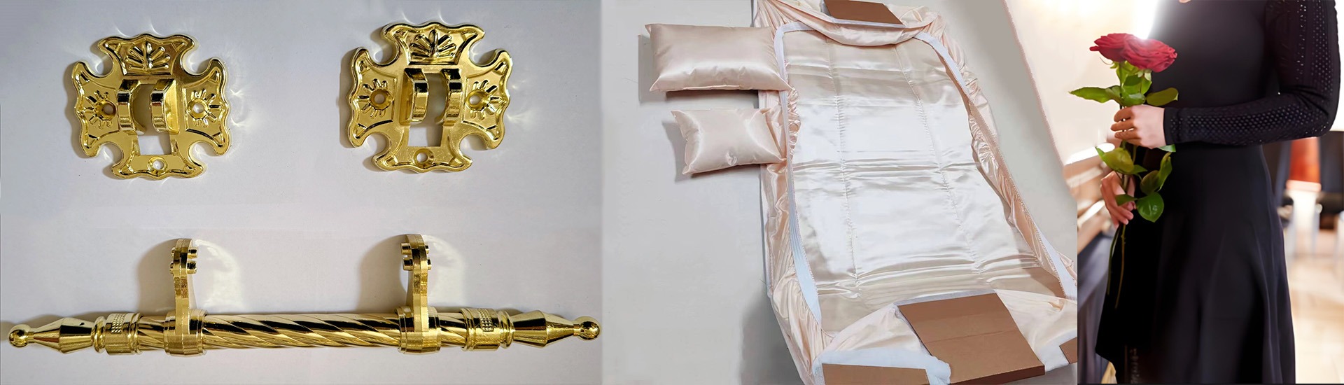 Suministros funerarios profesionales, suministros funerarios de color dorado, manijas de ataúd de funerales cruzadas de plástico