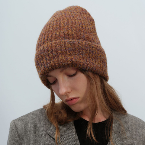 F-3298ファッショングラデーション厚手の暖かいニットスノービーニー女性男性カスタムOemビーニーキャップ冬用帽子2025