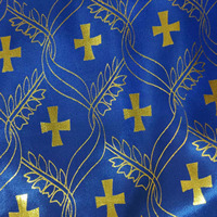 Wholesale Polyester Cross Leaf Print Blue Satin Coffin Casket Lining Fabric Gold Stamping Casket Interior Lining Fabric