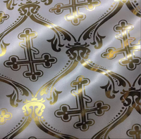 Wholesale Funeral Textile Silk Satin Fabric Coffin Interior Lining Decoration Gold Stamping Cross Pattern for Casket and Coffin