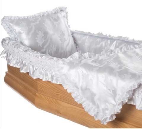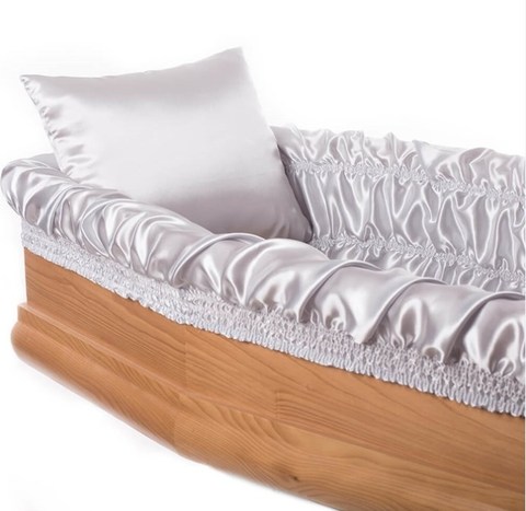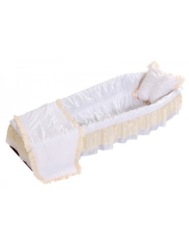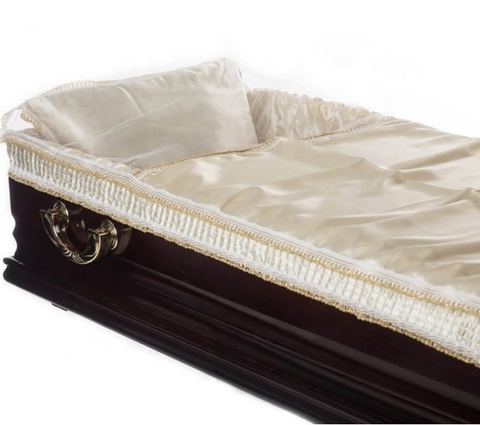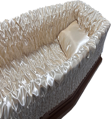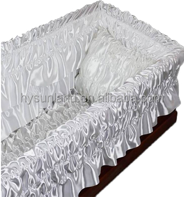 Forro de ataúd de tela satinada Interior de ataúd de estilo francés con bordes con volantes Decoración de ataúd Suministros funerarios Producto de China